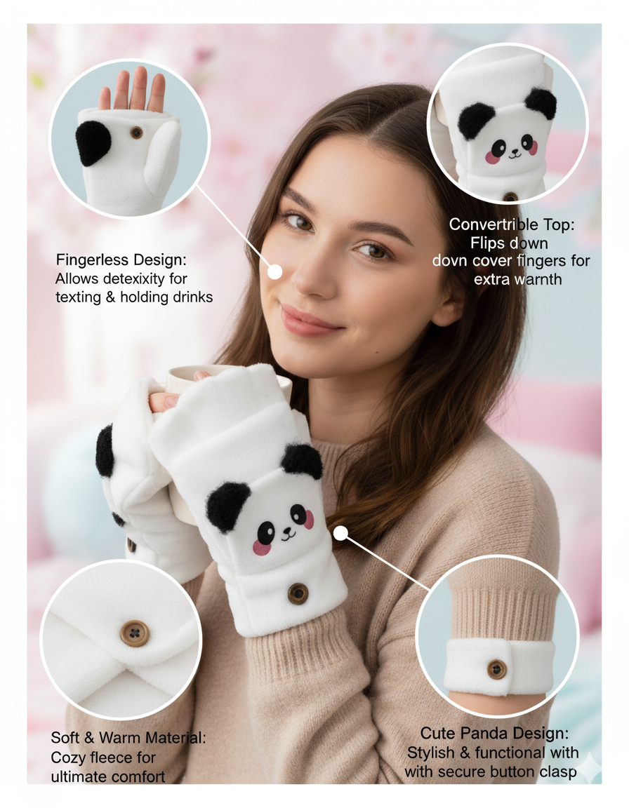 • DESIGN FEATURES: Adorable pink knit fingerless gloves with cute animal face design, fuzzy black accents, and decorative golden button embellishment