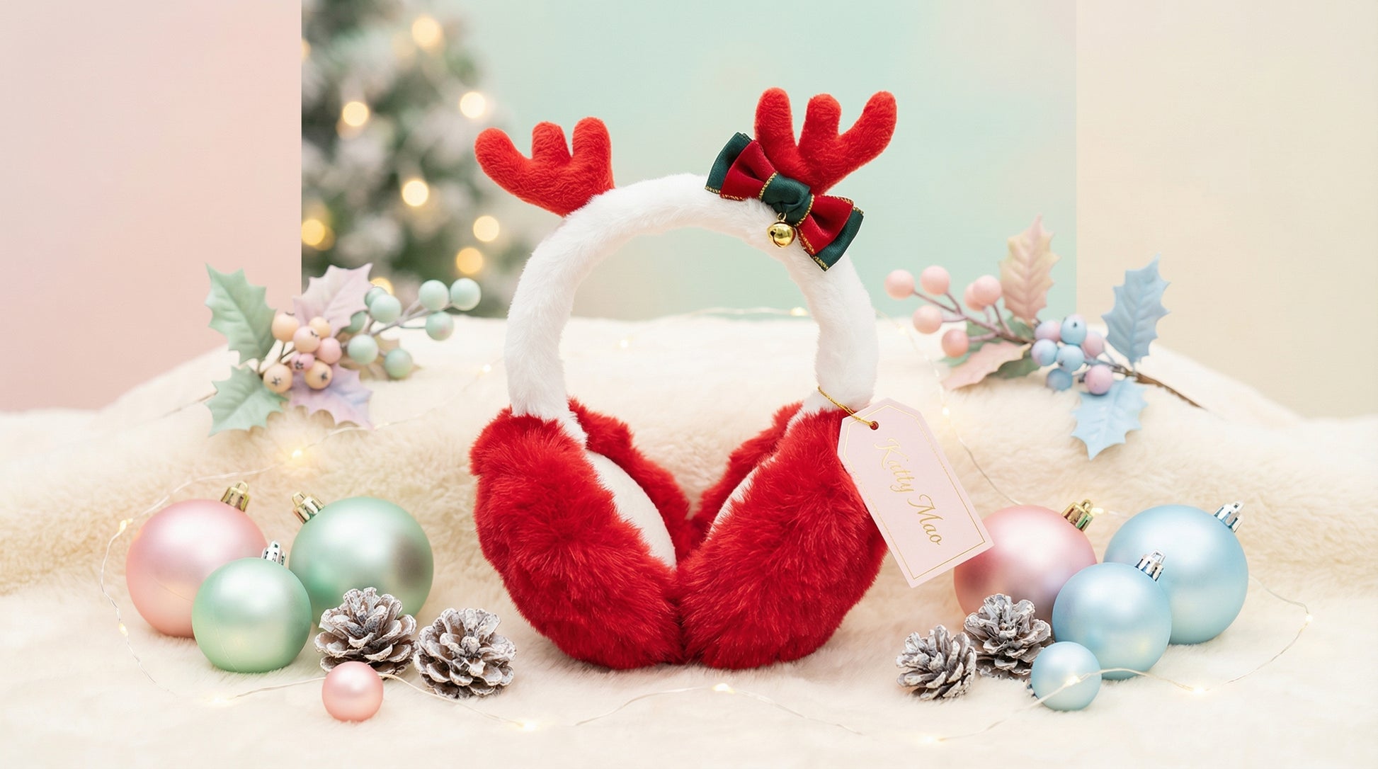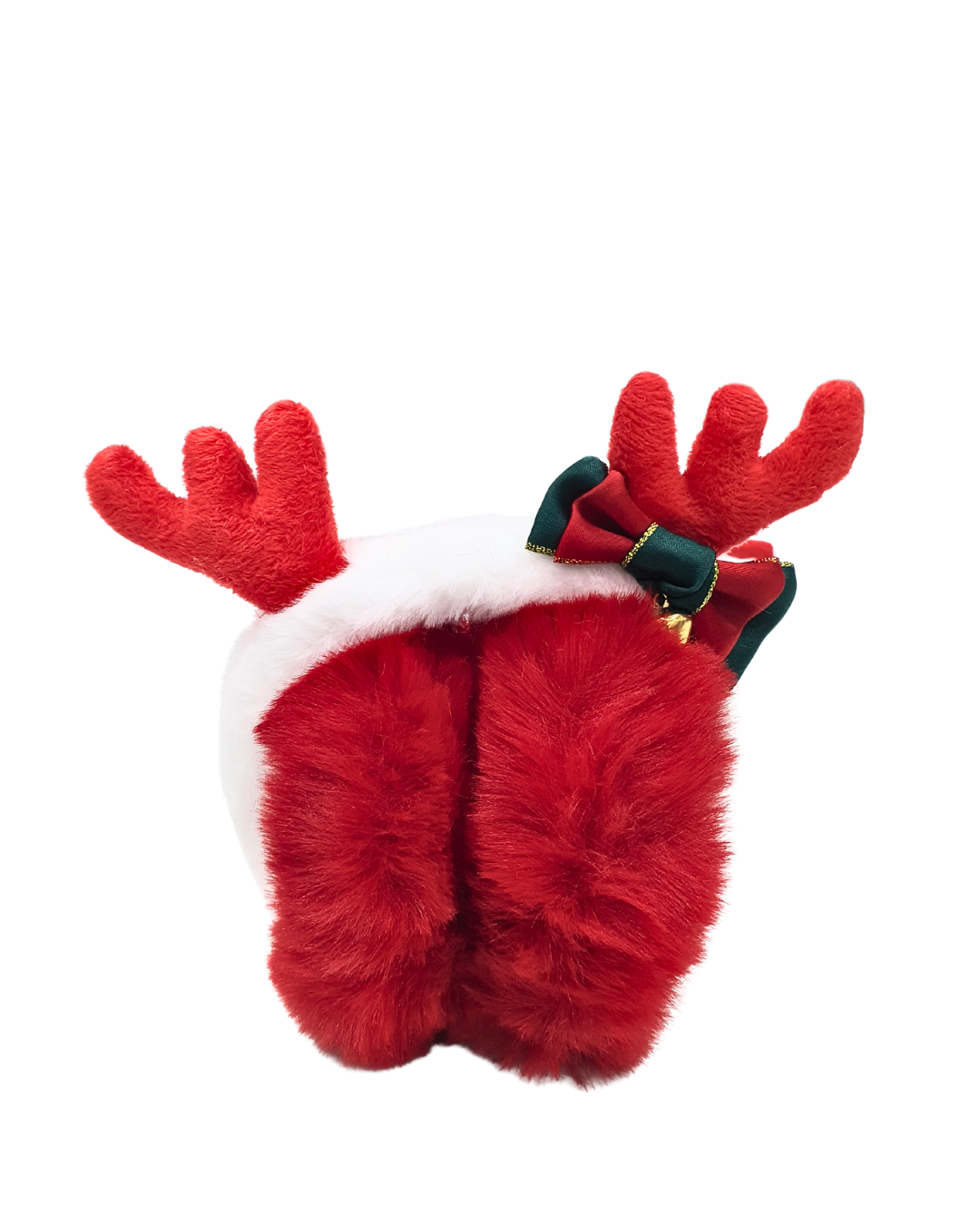 • FESTIVE DESIGN: Adorable reindeer-themed earmuffs featuring plush red fur, decorative bows, and jingling bells for a cheerful Christmas look