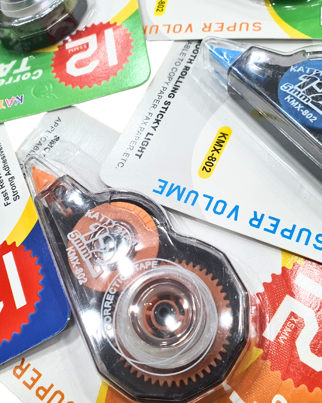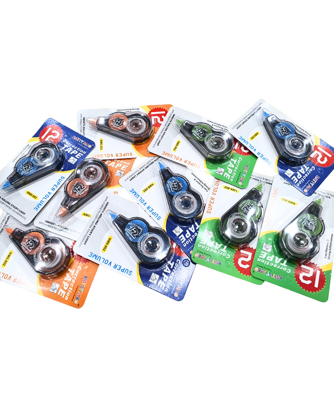 Transform your writing experience with this premium 5-pack correction tape roller set from KATTYMAO. Each roller features a generous 5mm-wide tape that provides smooth, precise coverage for neat corrections on various paper types. The super volume design ensures long-lasting use, while the ergonomic shape offers comfortable handling during extended writing sessions. Available in a variety of colours including blue, green, orange, and white, these correction rollers deliver clean, crisp corrections that are instantly ready for rewriting. The compact size makes them perfect for your desk, pencil case, or backpack. These correction tape rollers apply smoothly without catching or tearing, leaving a clean surface that won't ghost or show through on photocopies. Ideal for students, office workers, or anyone who needs reliable correction tools for their writing tasks. The durable construction and quality mechanism ensure consistent performance throughout the roller's lifespan.