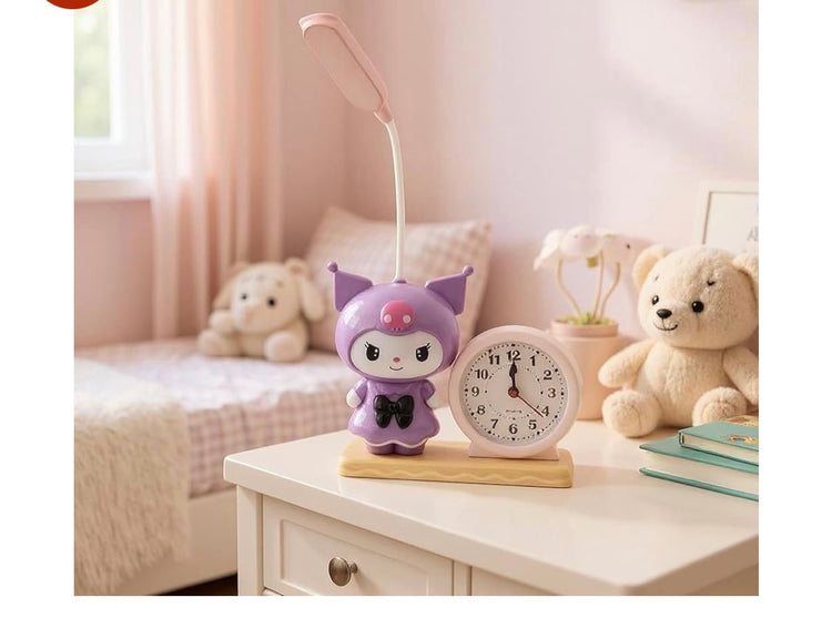 DUAL FUNCTIONALITY: Combines a cute character-themed LED desk lamp with an analog clock display, perfect for kids' bedrooms and study spaces.