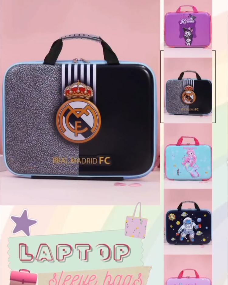 Keep your iPad safe in style with these eye-catching iPad sleeve bags—featuring padded protection, a soft lining, and secure zipper closure. Available in multiple kid-friendly designs, from Real Madrid FC and astronaut prints to mermaids and cute cartoon characters, these sleeves add personality to your tech and protect against daily bumps and scratches. Light, slim, and easy to carry with the comfortable handle, they fit most iPads or tablets and make ideal gifts for school, travel, or work.