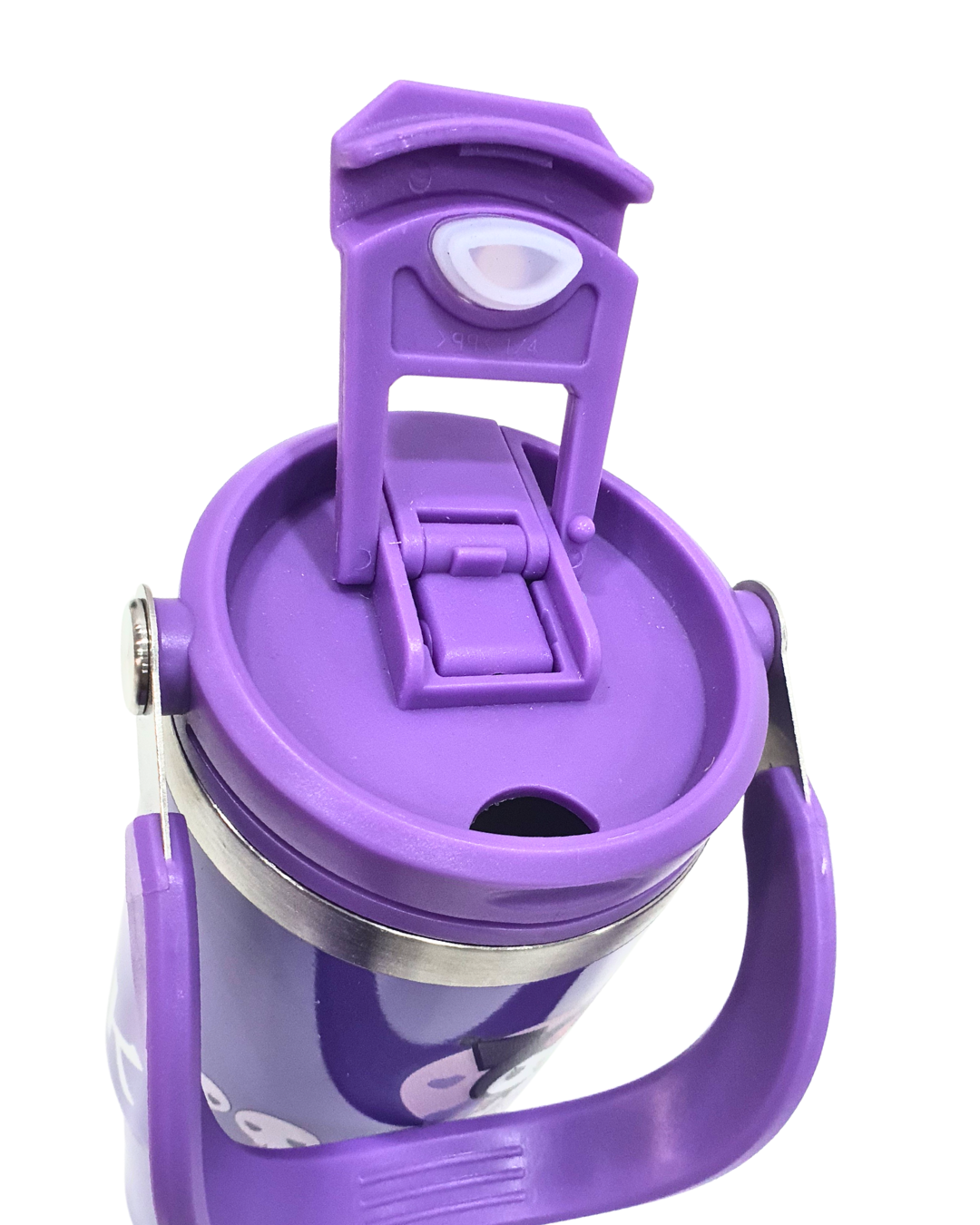 Stay hydrated in style with this charming insulated travel tumbler featuring an adorable cartoon design in pink and purple hues. The stainless steel construction maintains your beverage temperature while the convenient handle makes it perfect for on-the-go use. The tumbler showcases delightful artwork including a cute umbrella motif and playful characters, making it both functional and fashionable. The secure lid design helps prevent spills, while the durable stainless steel body ensures longevity. Perfect for daily use, whether you're commuting, working, or enjoying outdoor activities. The combination of practical features and whimsical design makes this tumbler an ideal companion for keeping your favourite hot or cold beverages at the desired temperature. The ergonomic handle provides a comfortable grip, making it easy to carry during your daily adventures. This tumbler is a practical choice for anyone looking to add a touch of personality to their daily hydration routine.