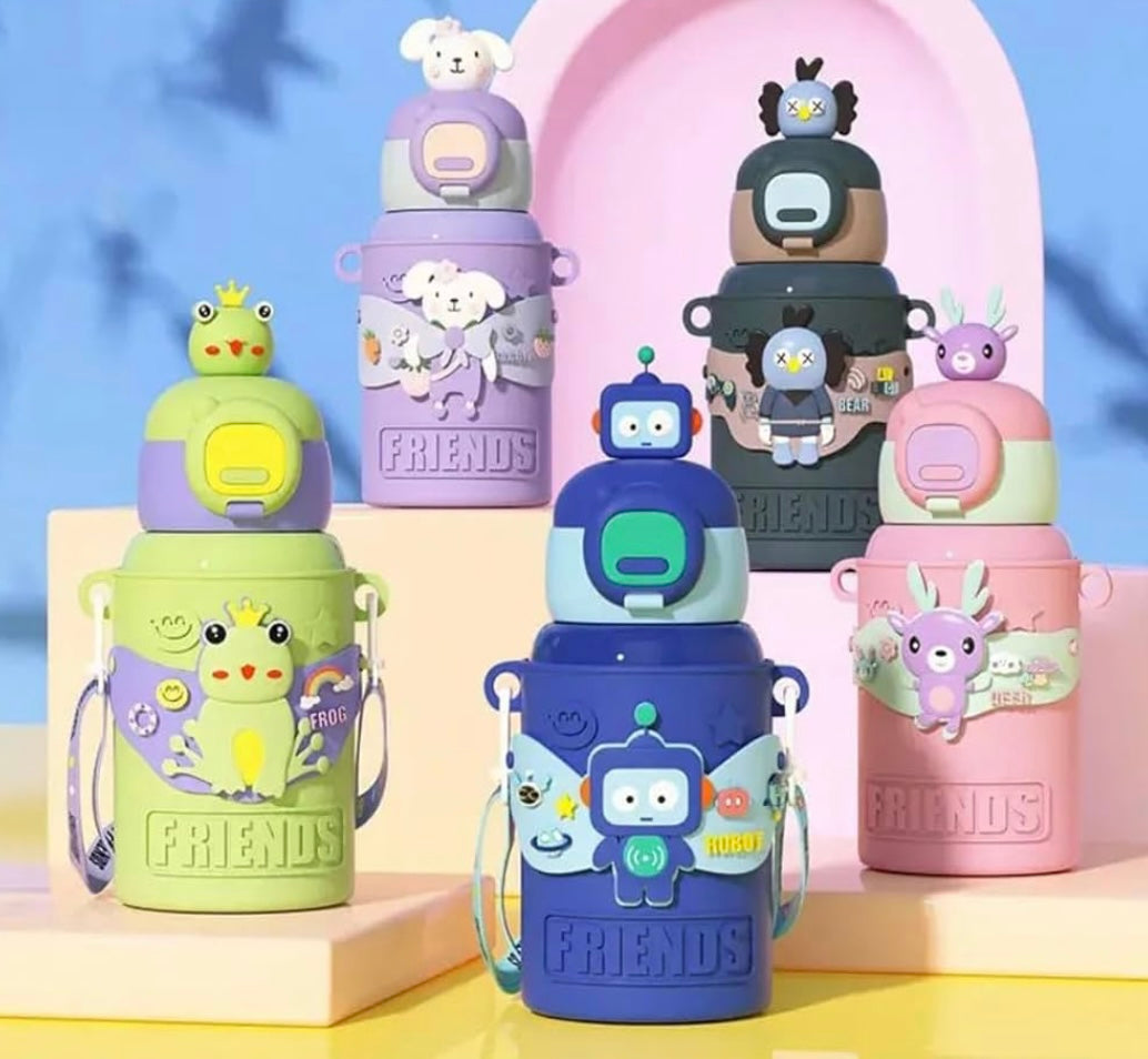TEMPERATURE CONTROL: With advanced double-wall vacuum insulation, this water bottle keeps drinks cool for up to 8 hours and warm for up to 12 hours. Perfect for every season, kids can enjoy a refreshing cold drink in summer or a cozy hot beverage in winter. This feature ensures that drinks stay fresh and enjoyable throughout the day.