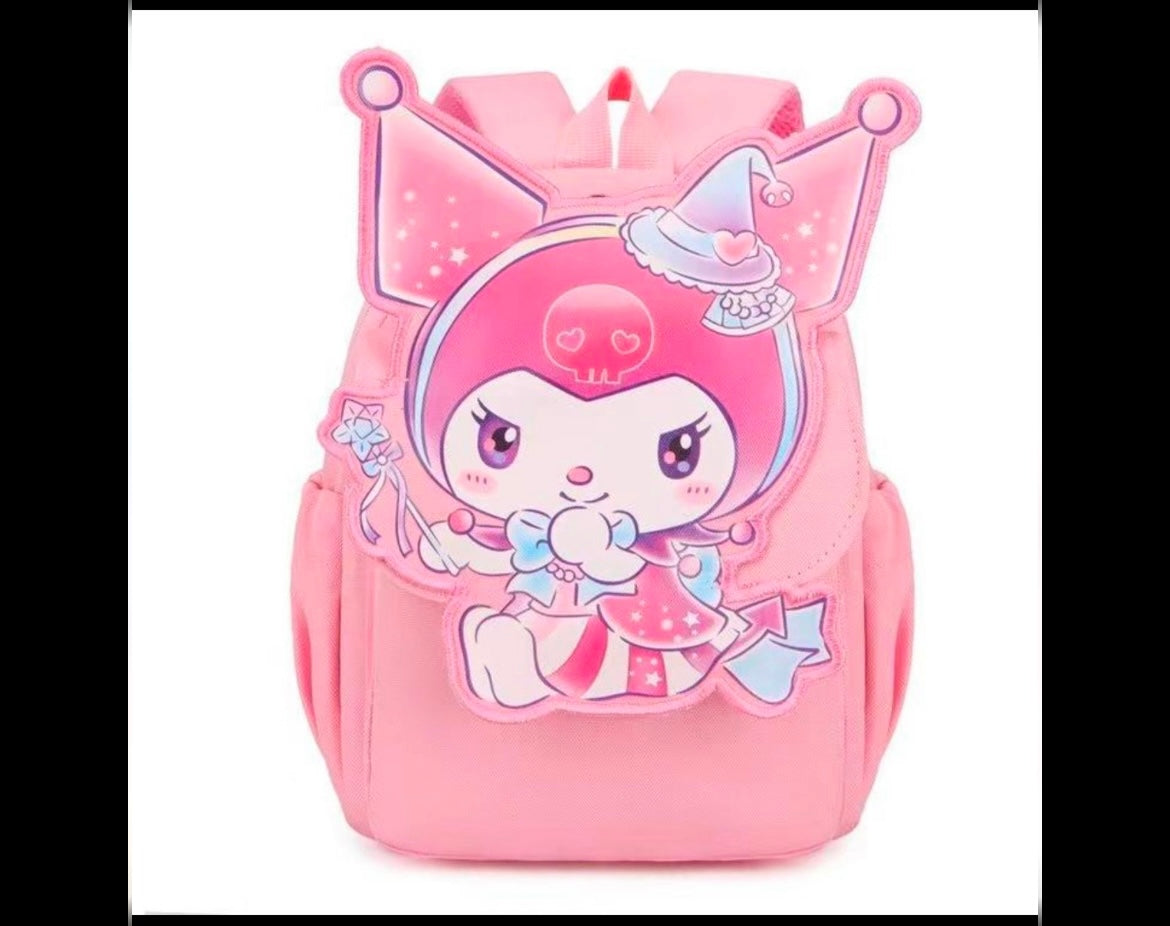 This children’s backpack features a cute, embossed cartoon design inspired by popular Sanrio characters. It is crafted from lightweight, durable materials, with adjustable shoulder straps and spacious compartments suitable for books, toys, and lunch boxes. The backpack's playful, magical aesthetic makes it a favorite for school, travel, or gifting.